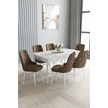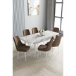 Jusie Beyaz Mermer Desen 80x132 Açılabilir Yemek Odası Takımı 6 Adet Sandalye Kahverengi