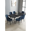 Jusie Siyah Mermer Desen 80x132 Açılabilir Mutfak Masası Takımı 6 Adet Sandalye Lacivert