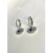 Justgaf Gümüş / Silver Renk Zirkon Taşlı Nazar Göz Detaylı Sallantılı Küpe Gümüş