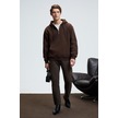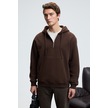 JUSTUS Erkek Kapüşonlu Kanguru Cepli Fermuar Yakalı Kahverengi Sweatshirt