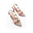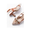 K-250 Taba Keten Günlük Arkası Açık Tokalı Topuklu Kadın Ayakkabı Taba