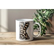 K Baş Harf Leopar Desenli Kupa Bardak - Kişiye Özel Feminen Konsept Hediye - Vahşi Hayvan Desenli Beyaz