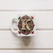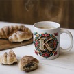 K Harfi Boho Bardak, Renkli Özel Tasarım Hediyelik Harfli Kupa, 330ml Porselen Beyaz