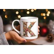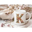 K Harfi Çiçek Desenli Kupa Bardak - Alfabe Harfleri İle Doğal Çiçekli Kupa - Hediye Fikir Beyaz