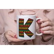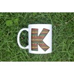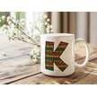 K Harfi Etnik Desenli Kupa - Afrika Tarzı Kahve Çay Kupası - Hediyelik - Black History Beyaz