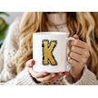 K Harfi Gold Simli Kupa Işıltılı Alfabe Harf Tasarımlı Kahve Kupası - Kişiye Özel Hediye Beyaz