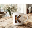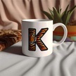 K Harfi Kaplan Figürlü Nakış Desenli Kupa Bardak - Kişiye Özel Vahşi Hayvan Desenli Kupa - Hediye Beyaz