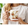 K Harfi Pembe Kareli Kalpli Göz Emojili Kupa Bardak Eğlenceli Kareli Tasarım Kahve Çay Kupası Beyaz