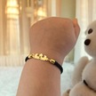 K Harfine Özel Taç Figürlü 14 Ayar Altın Plakalı Siyah İpek Örgülü Hediye Bileklik-507harf K