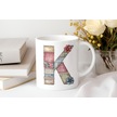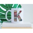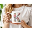 K Harfli Retro Çiçekli Kupa Bardak - Patchwork Tarz Yamalı Desenli İsme Özel Kupa - Hediye Beyaz