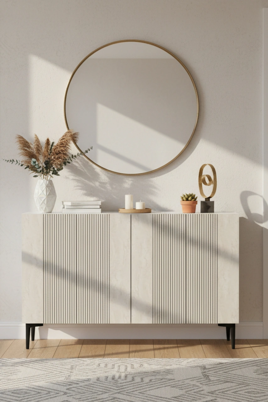 Ka1203bt Corsa120 Konsol, Kahve Köşesi, Tv Sehpası Beyaz-traverten Kapak 120cm Beyaz