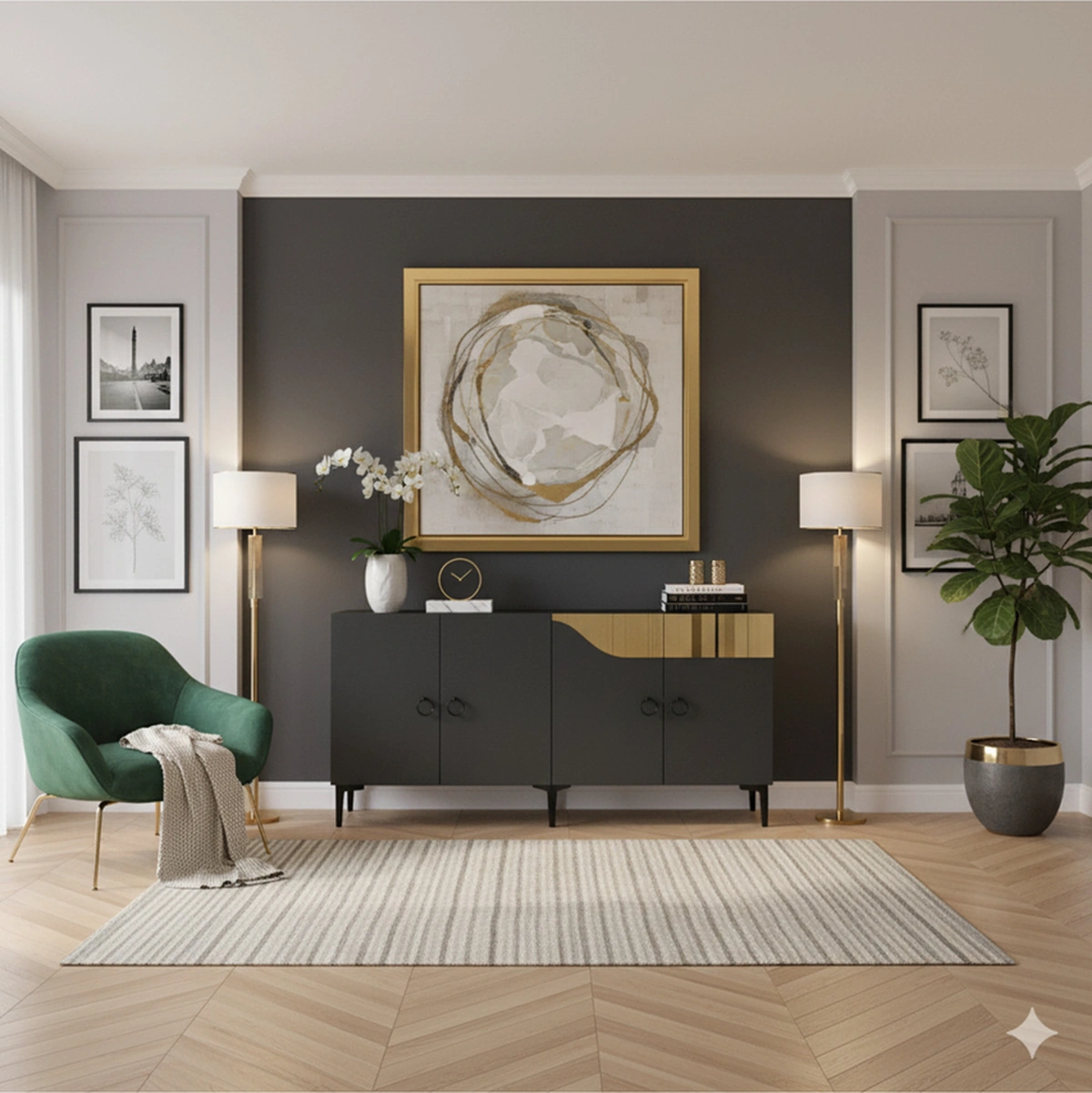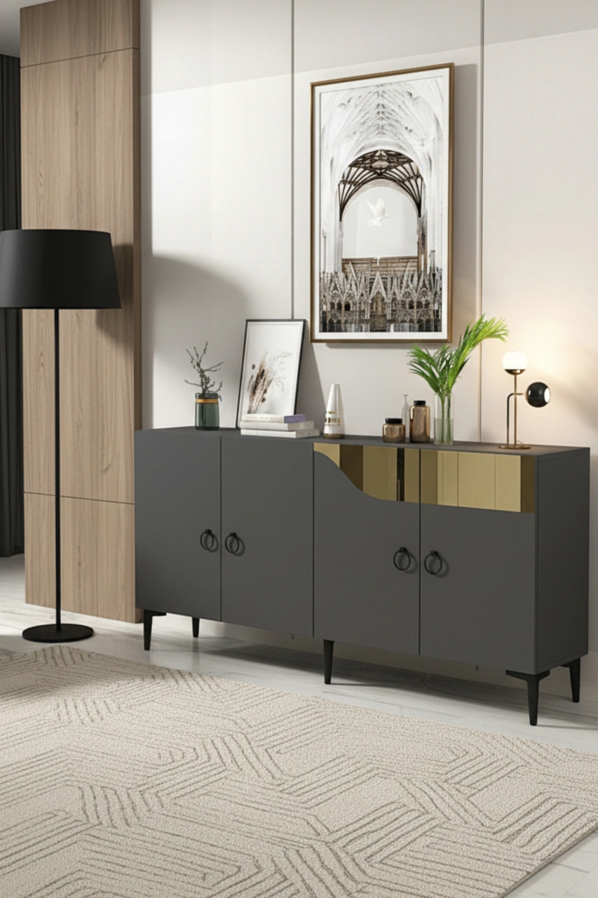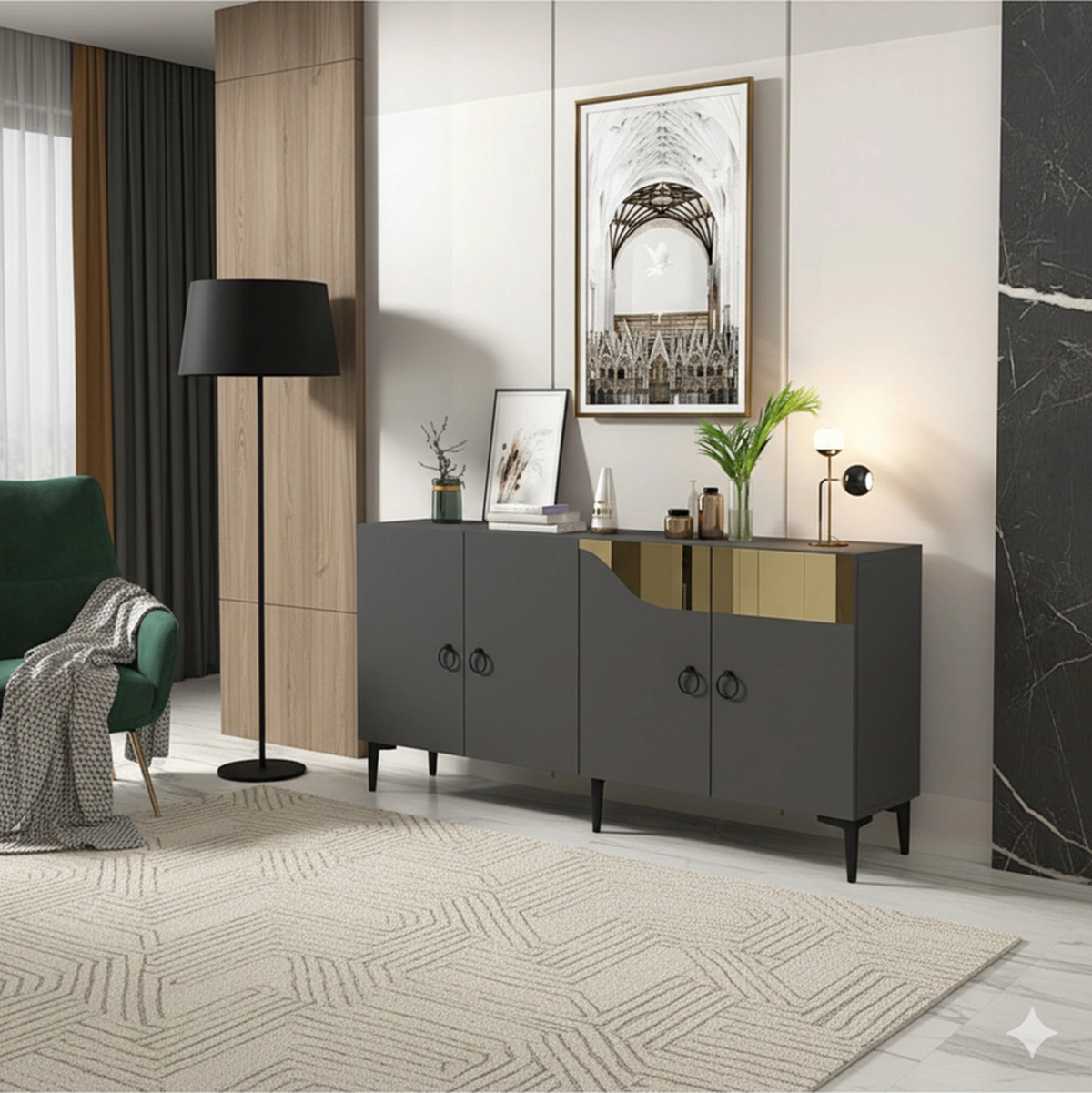 Ka1514ag Gama150 Konsol, Kahve Köşesi, Tv Sehpası Antrasit-gold 150cm Antrasit