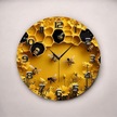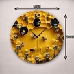 Kabartma Görünümlü Renkli Baskı Arı Desenli Sayılı Hediyelik Ahşap Sessiz Duvar Saati 50cm ÇOk Renkli