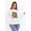 Kadife Ayıcıklar Desenli Şardonlu İçi Polarlı Ekru Regular Fit Bisiklet Yaka Kadın Sweatshirt Ekru