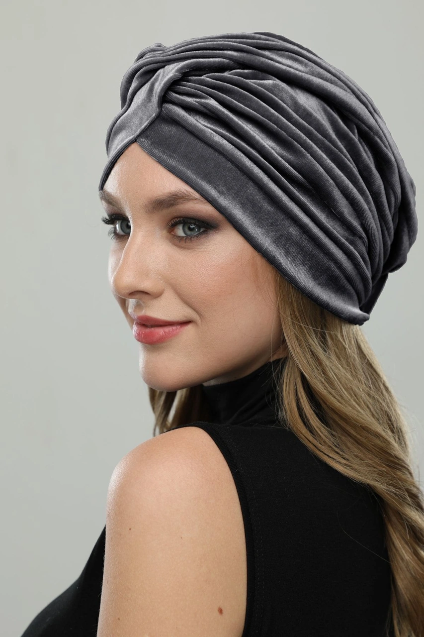 Kadife Çapraz Füme Hazır Türban Tesettür Bone Füme