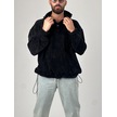 Kadife Dokulu Siyah Oversize Kapüşonlu Erkek Sweatshirt Coc1038 Siyah