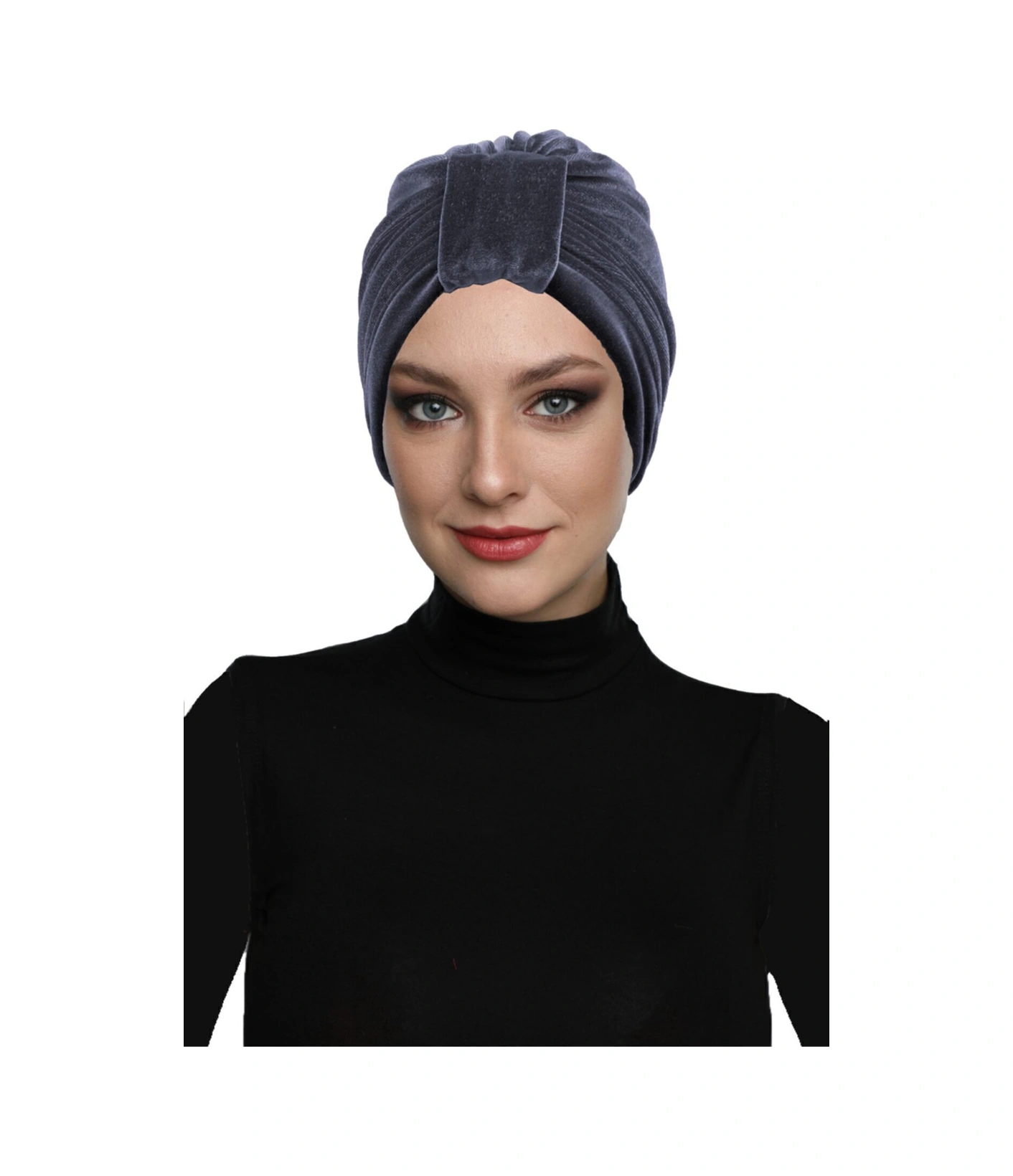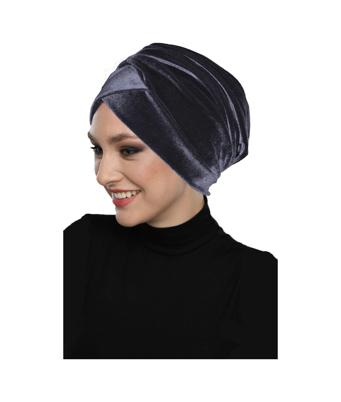 Kadife Kardelen Astarlı Füme Hazır Türban Tesettür Bone Füme