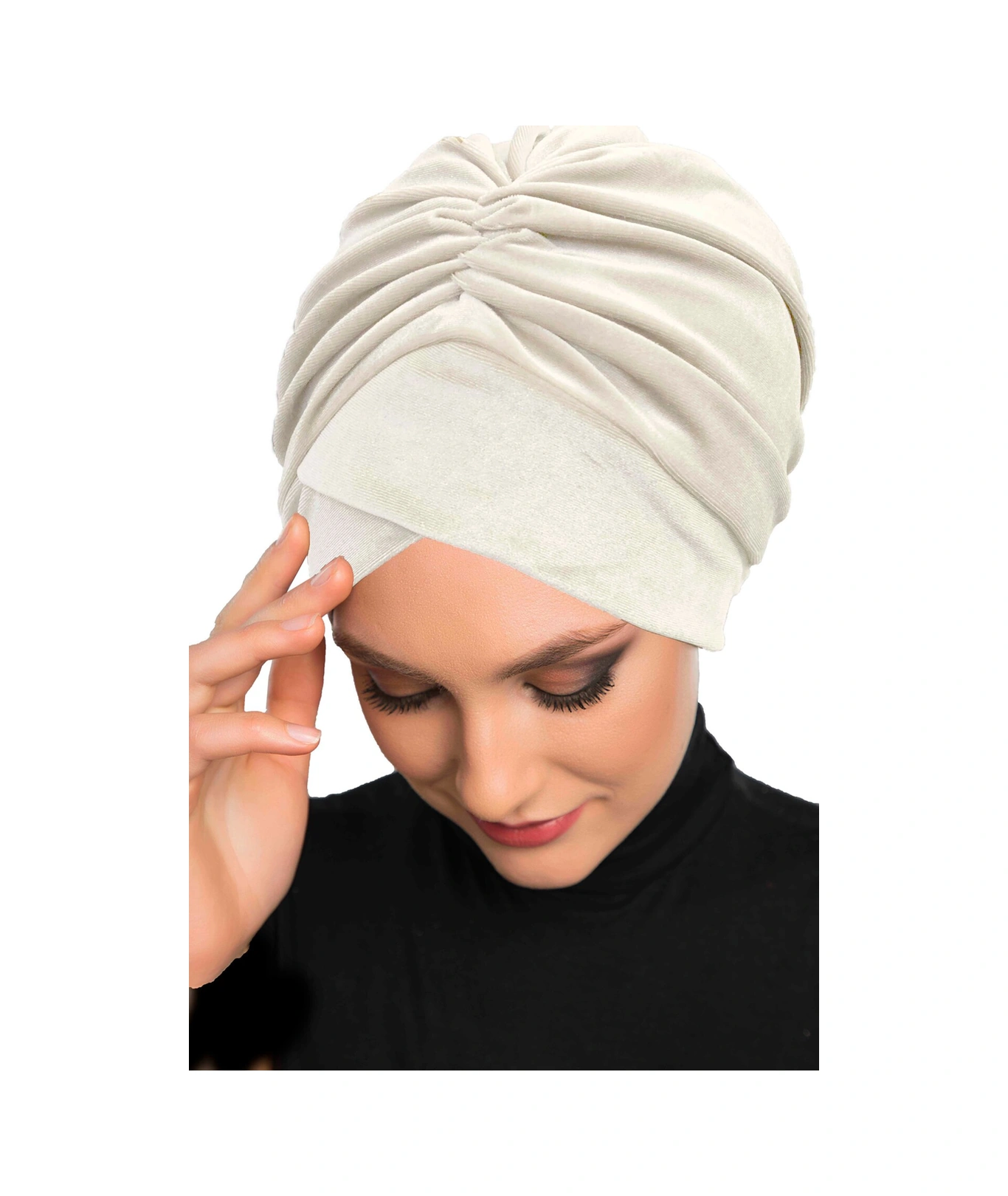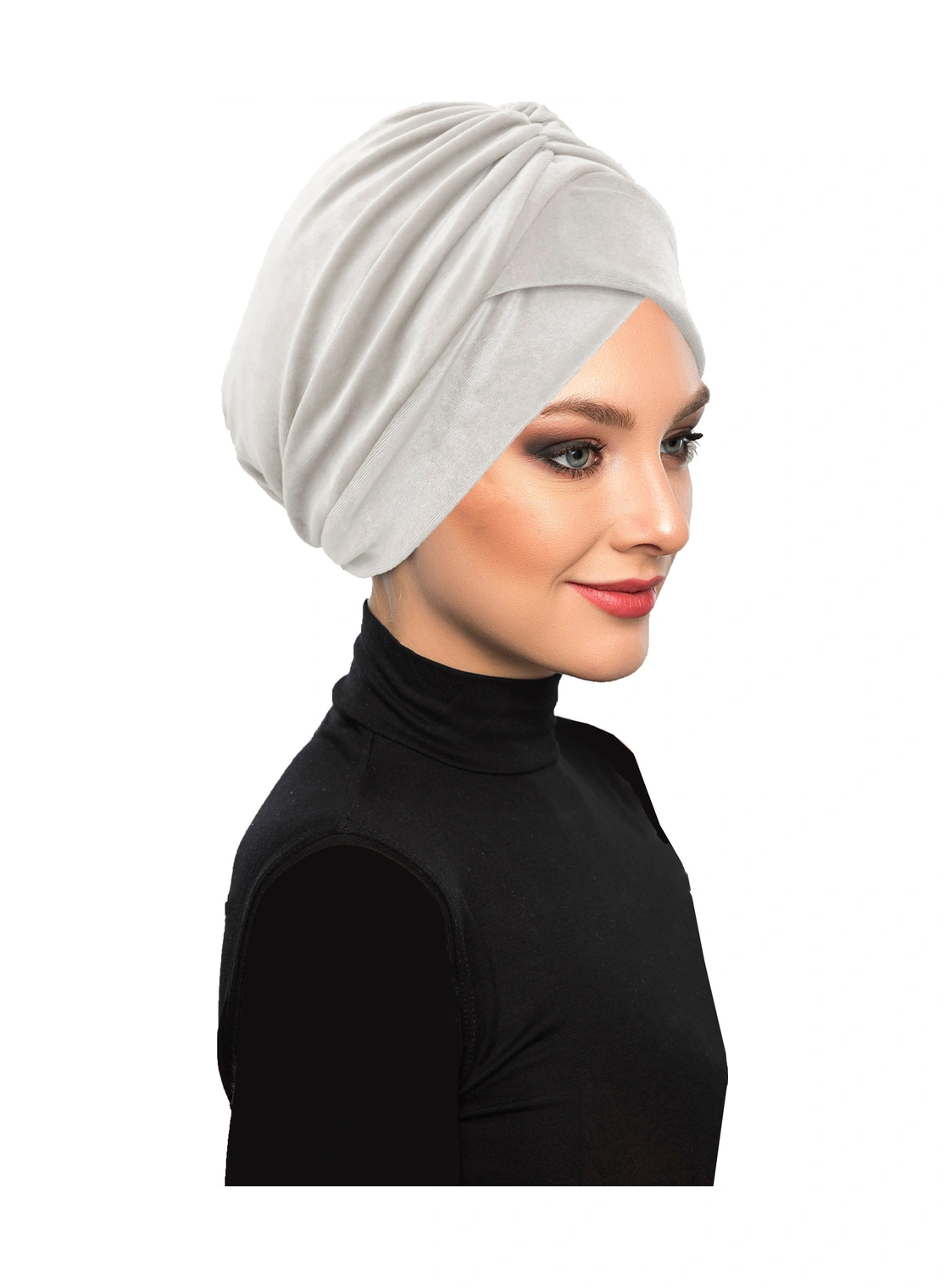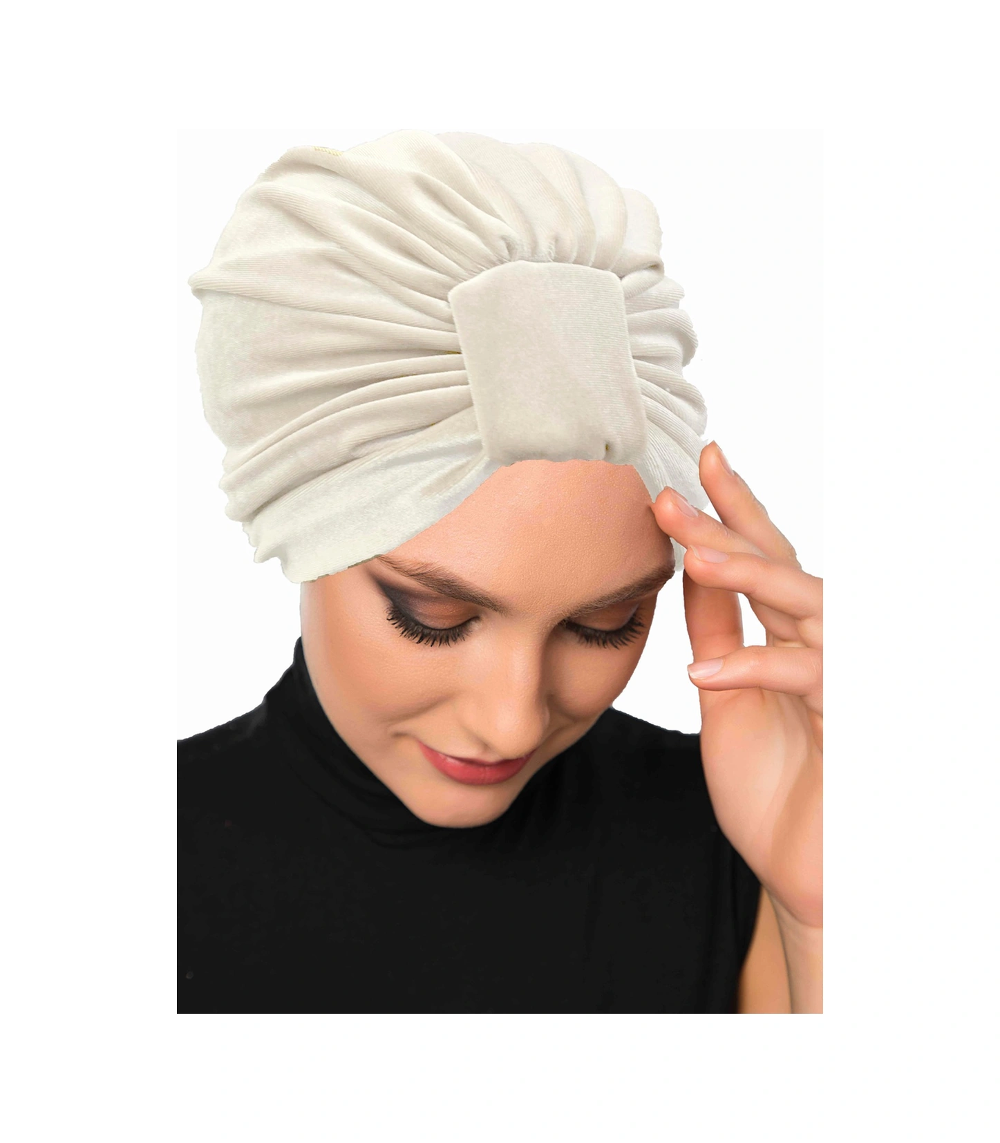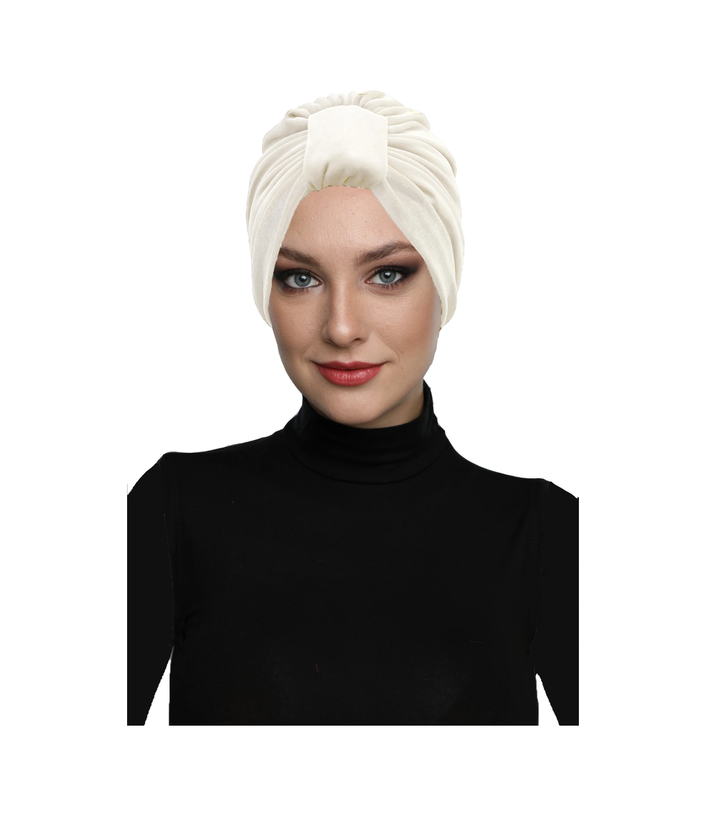 Kadife Kardelen Astarlı Krem Hazır Türban Tesettür Bone Krem