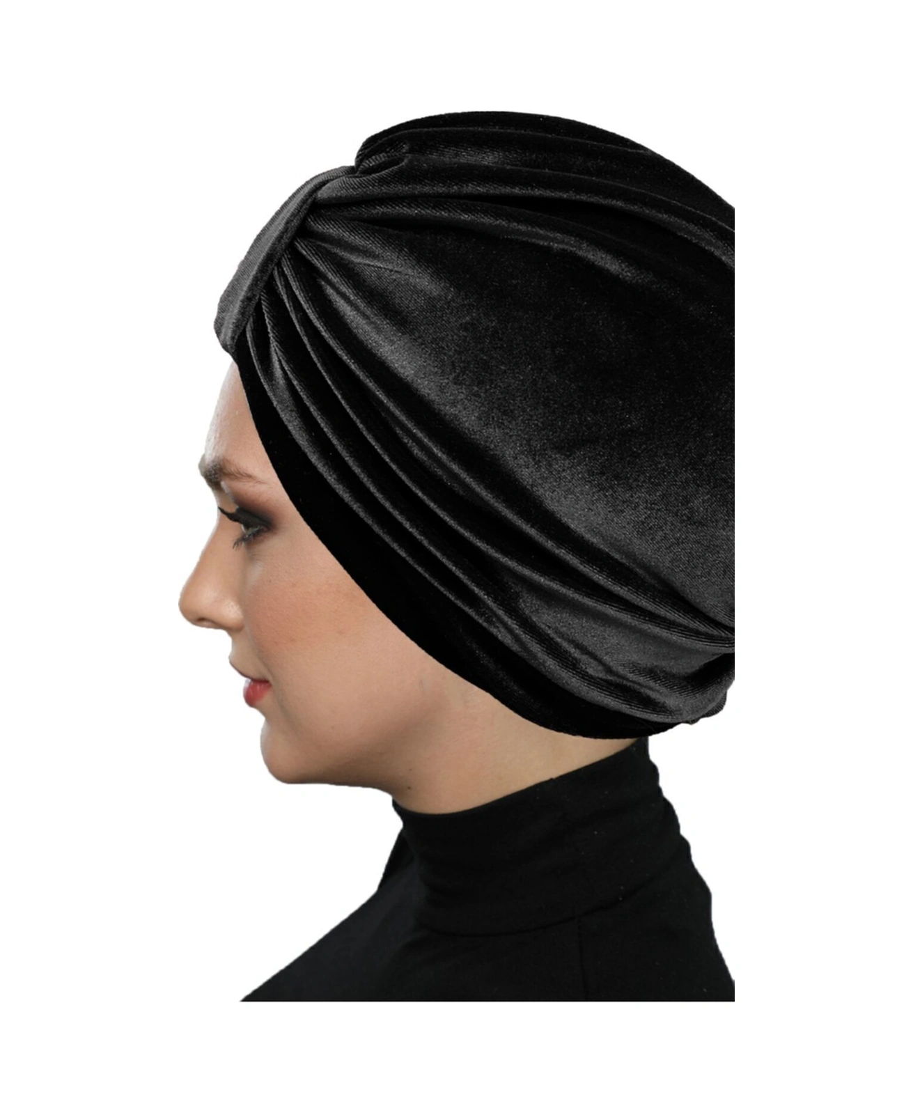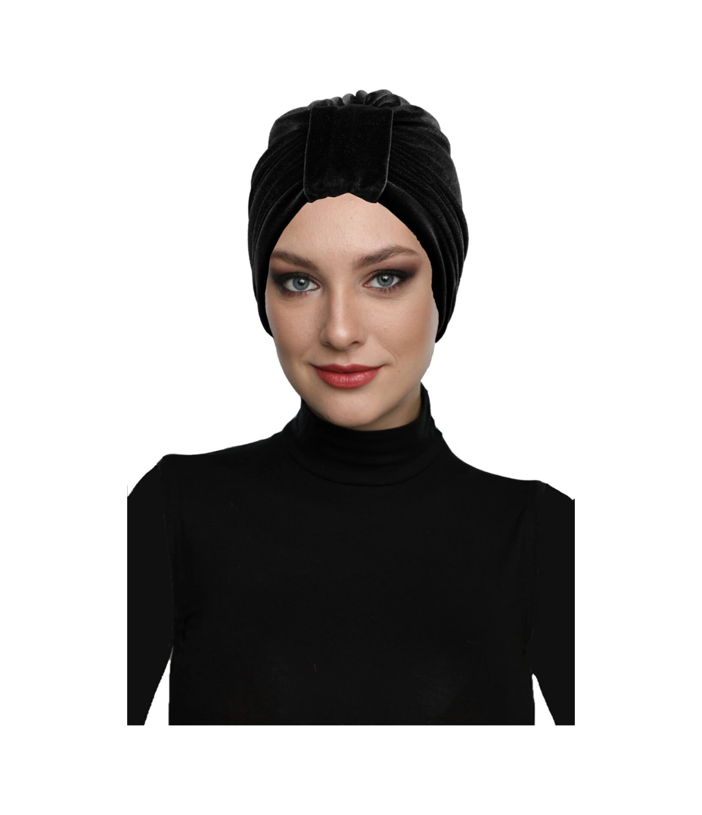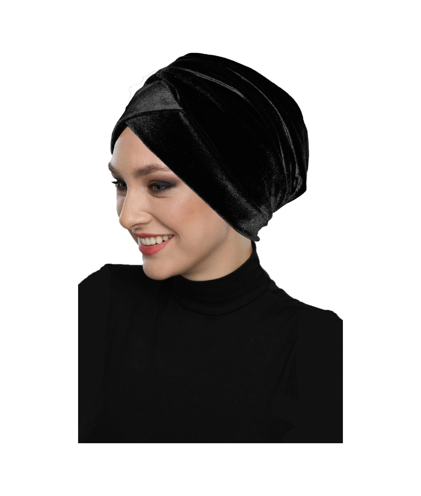 Kadife Kardelen Astarlı Siyah Hazır Türban Tesettür Bone Siyah