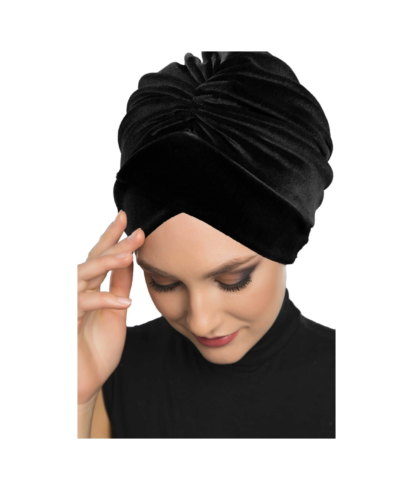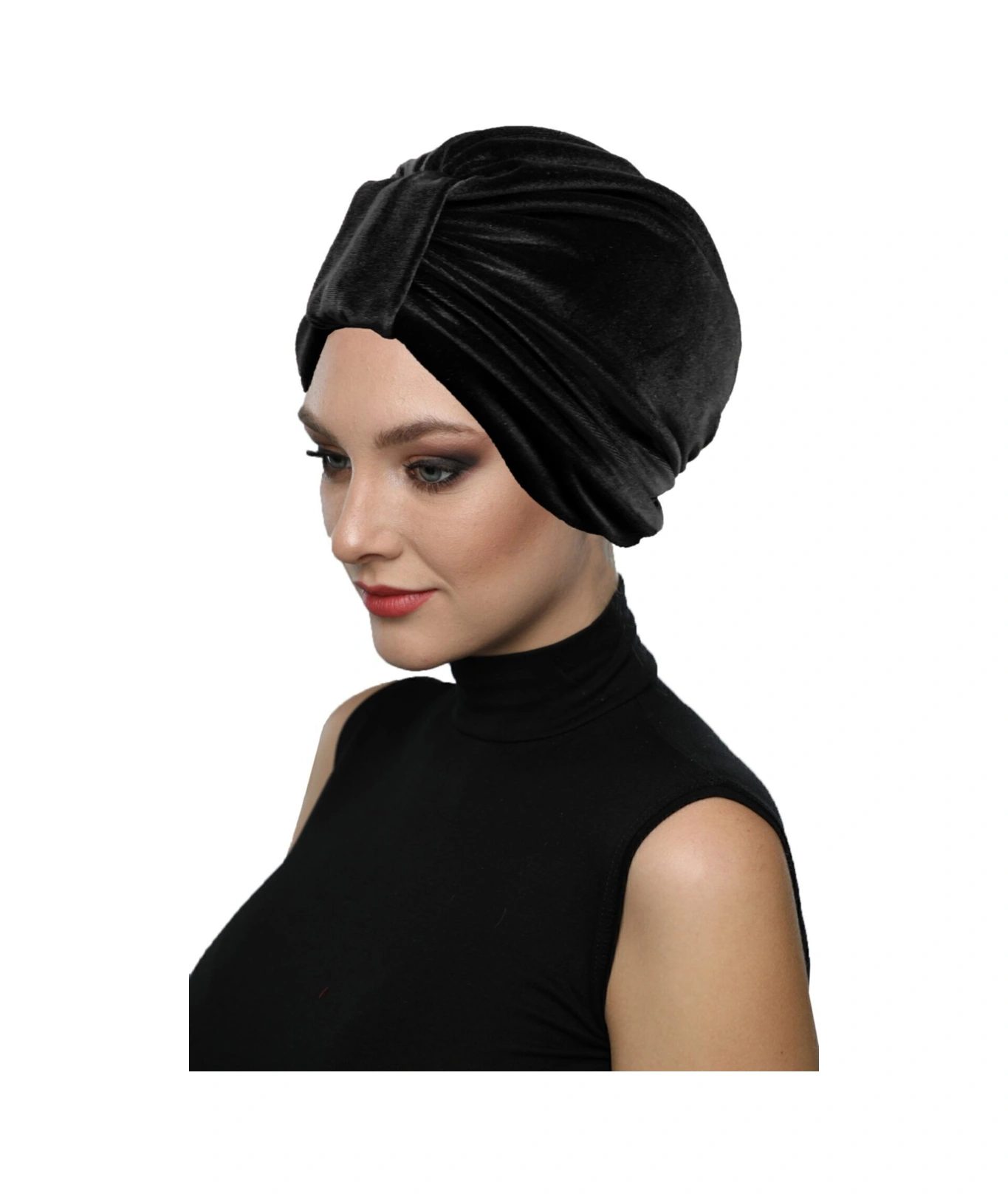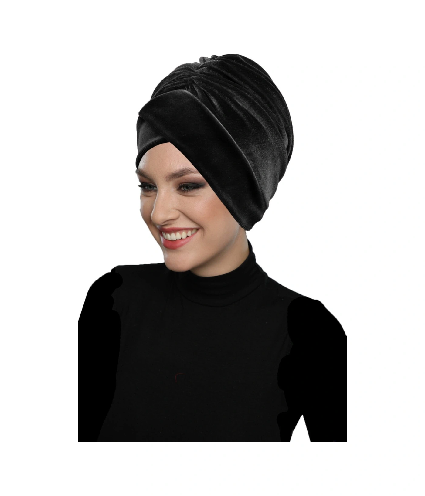 Kadife Kardelen Astarlı Siyah Hazır Türban Tesettür Bone Siyah