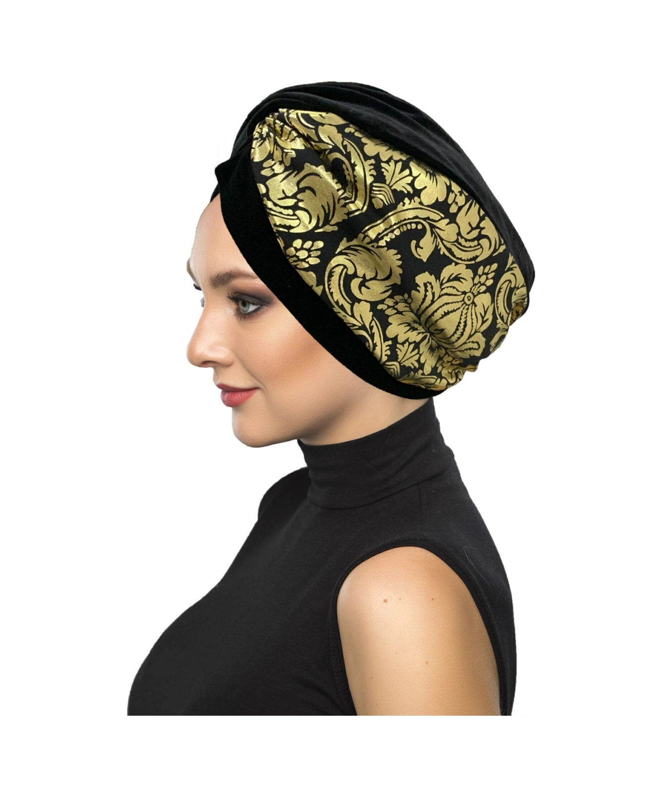 Kadife Özel Tasarım Osmanlı Motif Siyah Hazır Türban Tesettür Bone Siyah