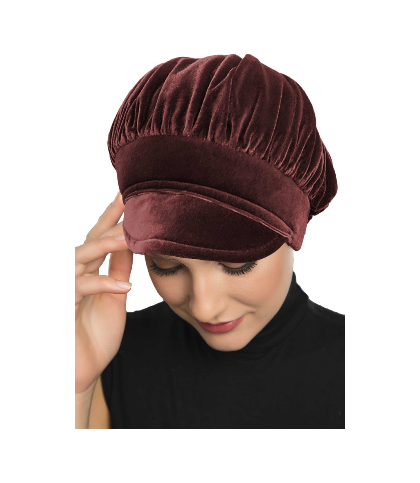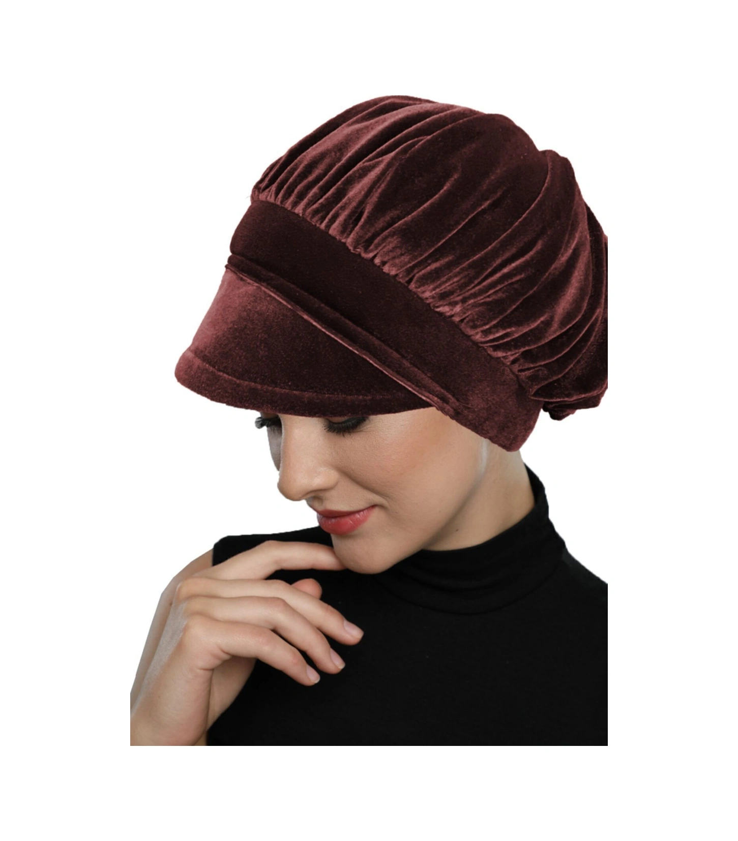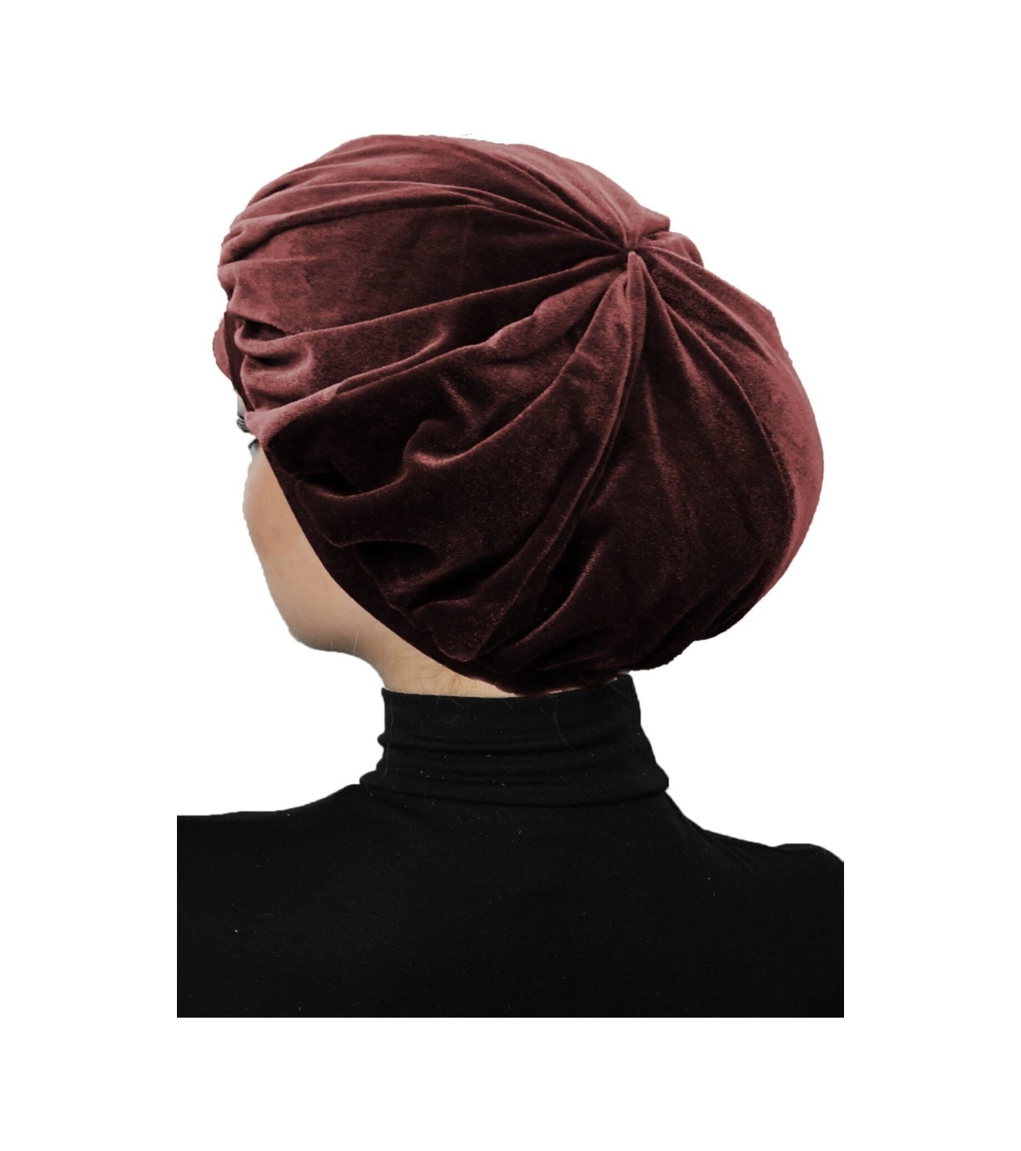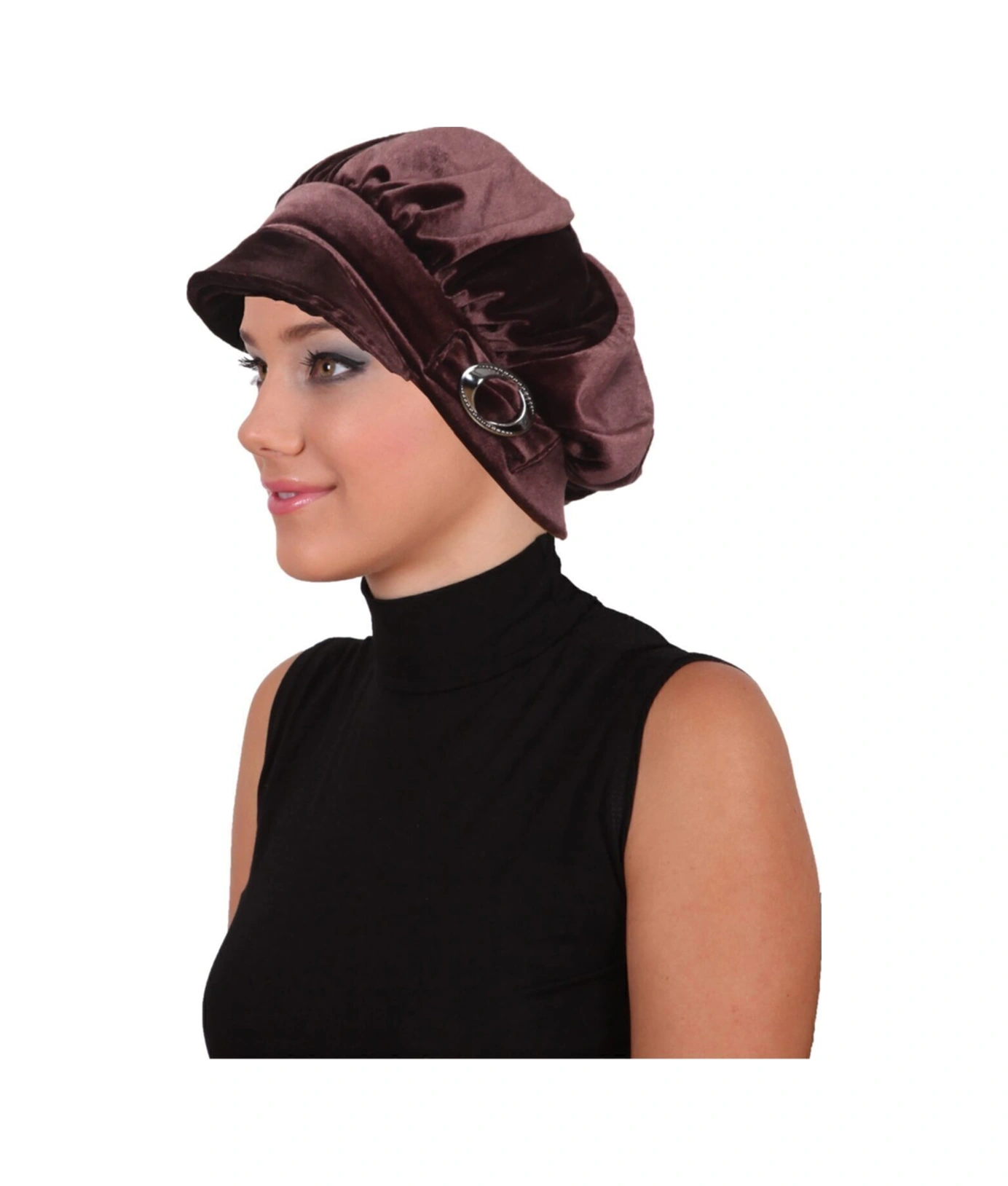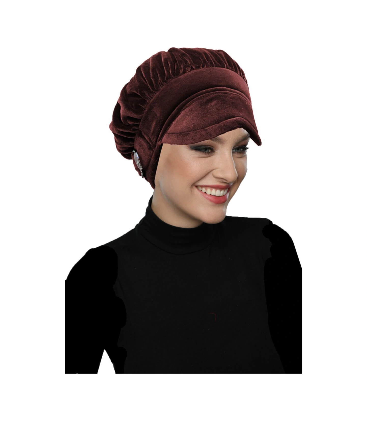 Kadife Şapka Toka Detaylı Kahve Hazır Türban Tesettür Bone Kahve