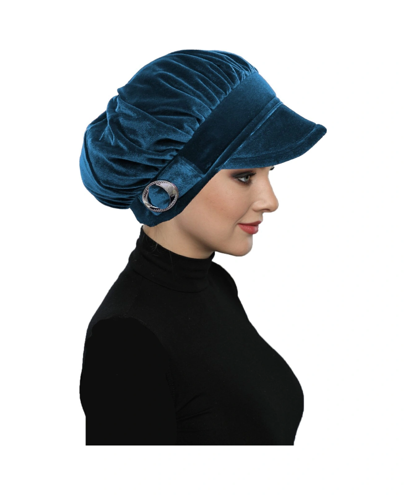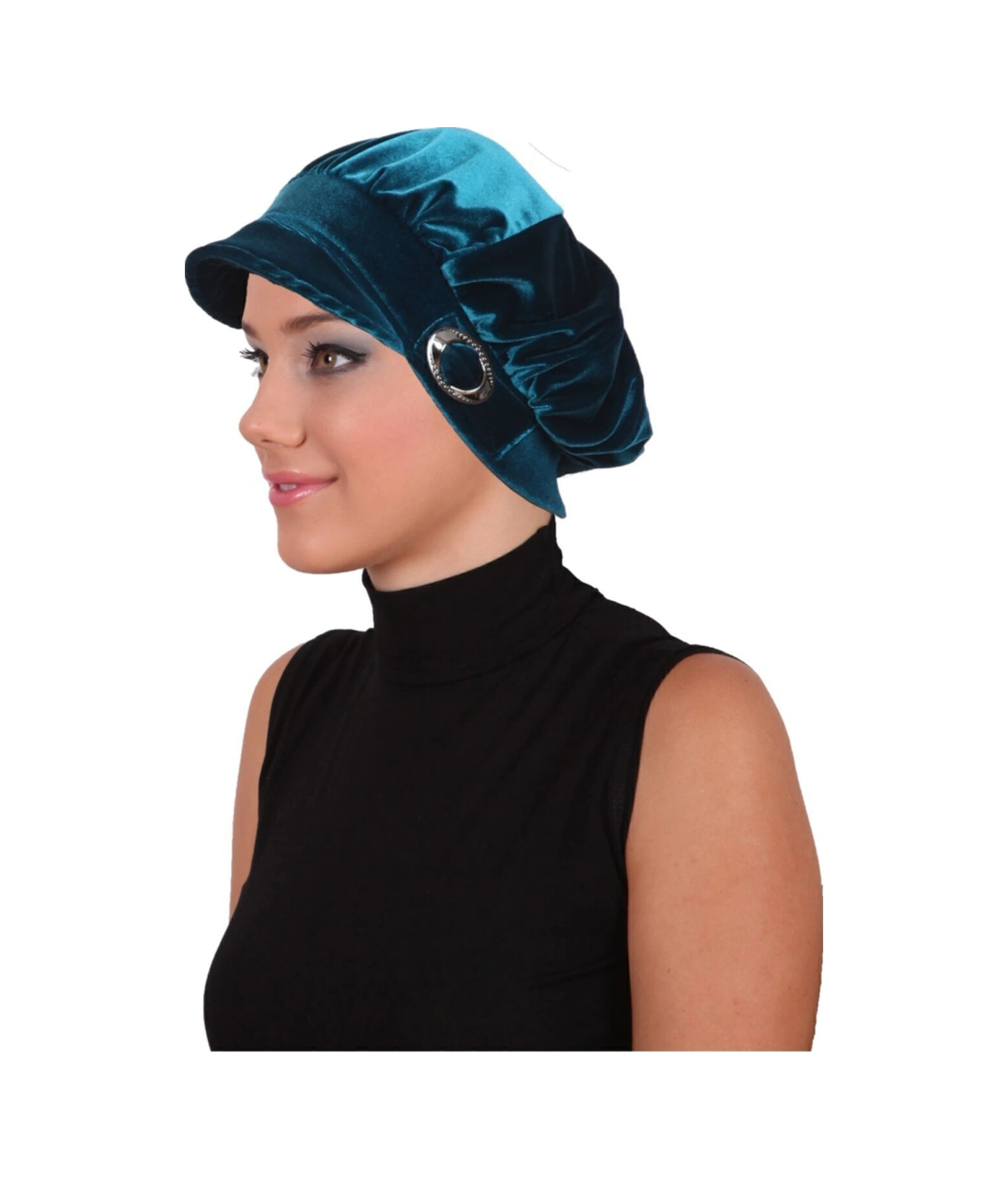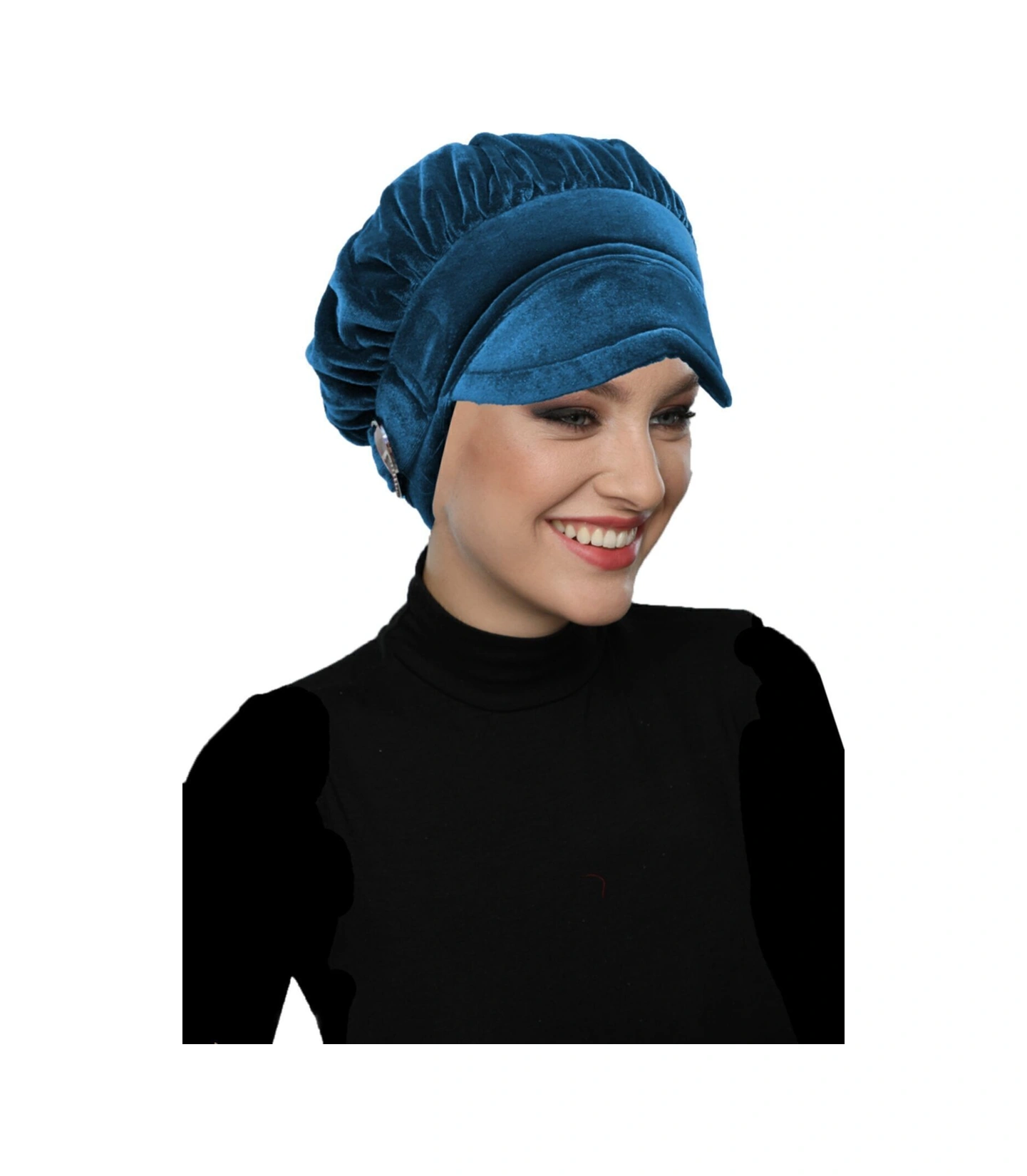 Kadife Şapka Toka Detaylı Petrol Hazır Türban Tesettür Bone Petrol