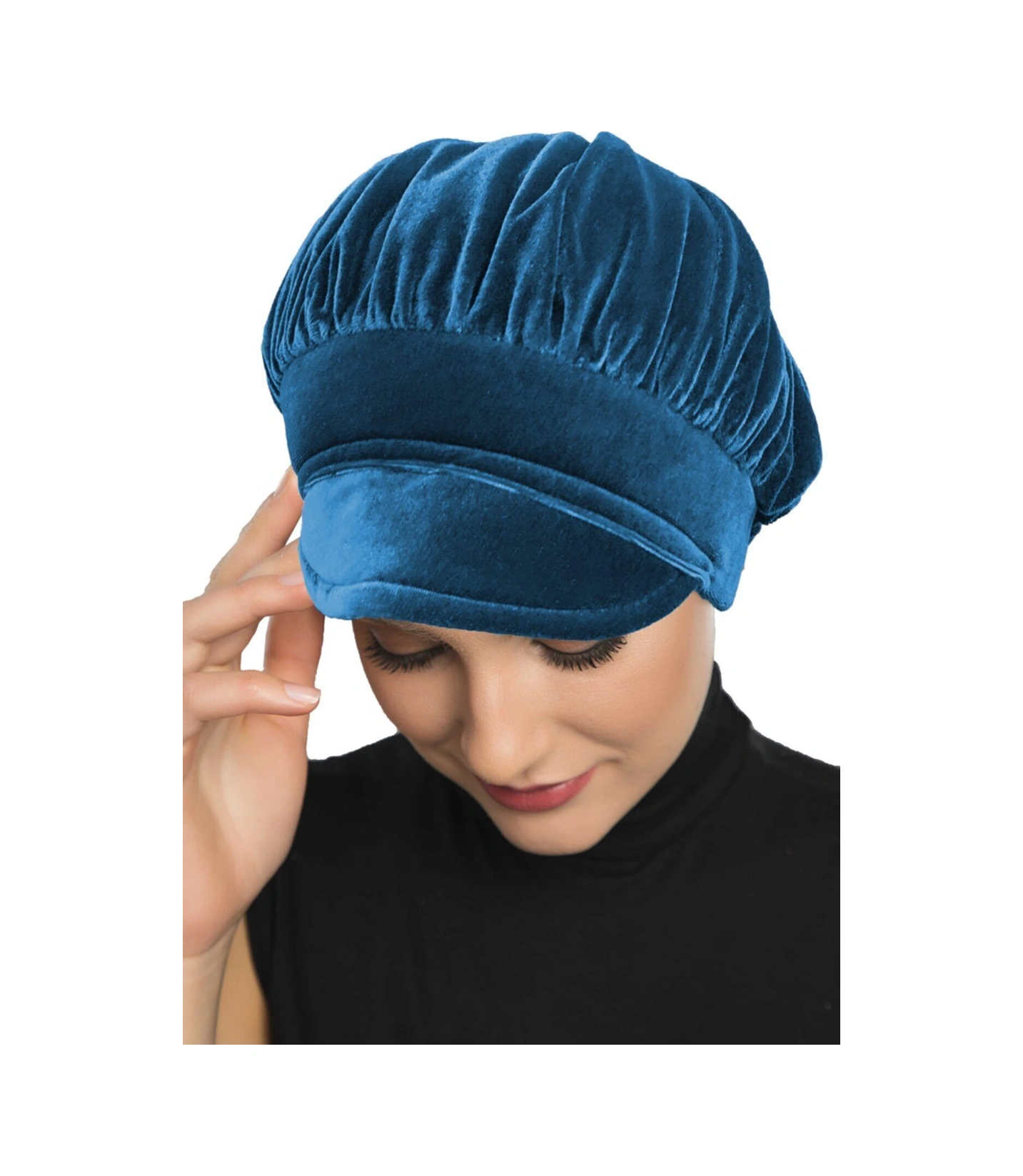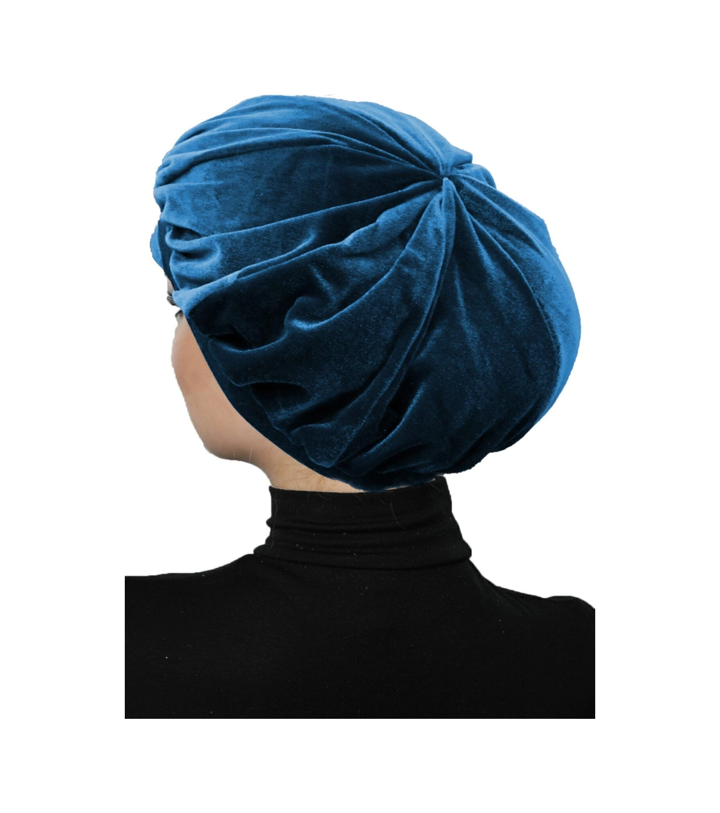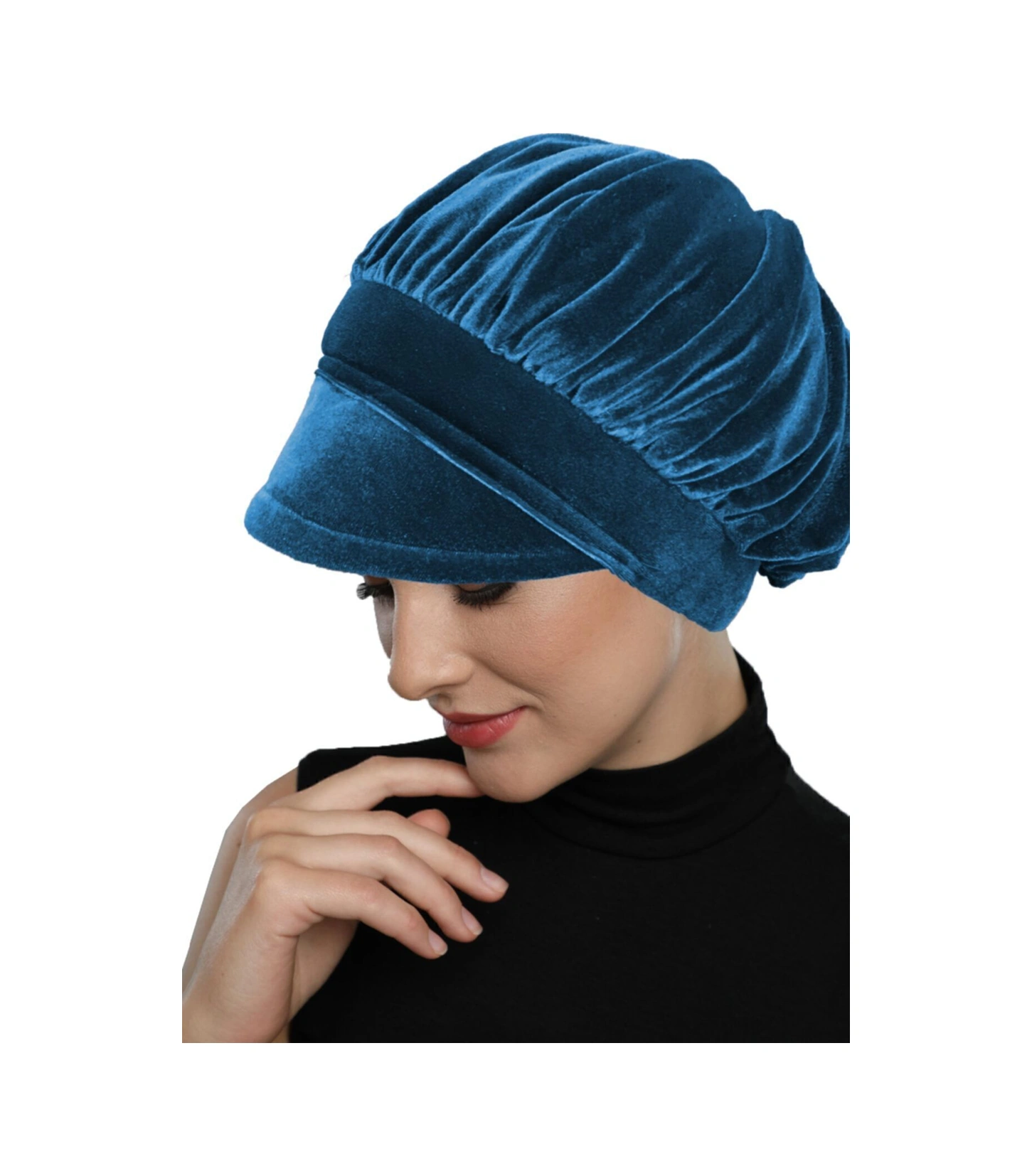 Kadife Şapka Toka Detaylı Petrol Hazır Türban Tesettür Bone Petrol