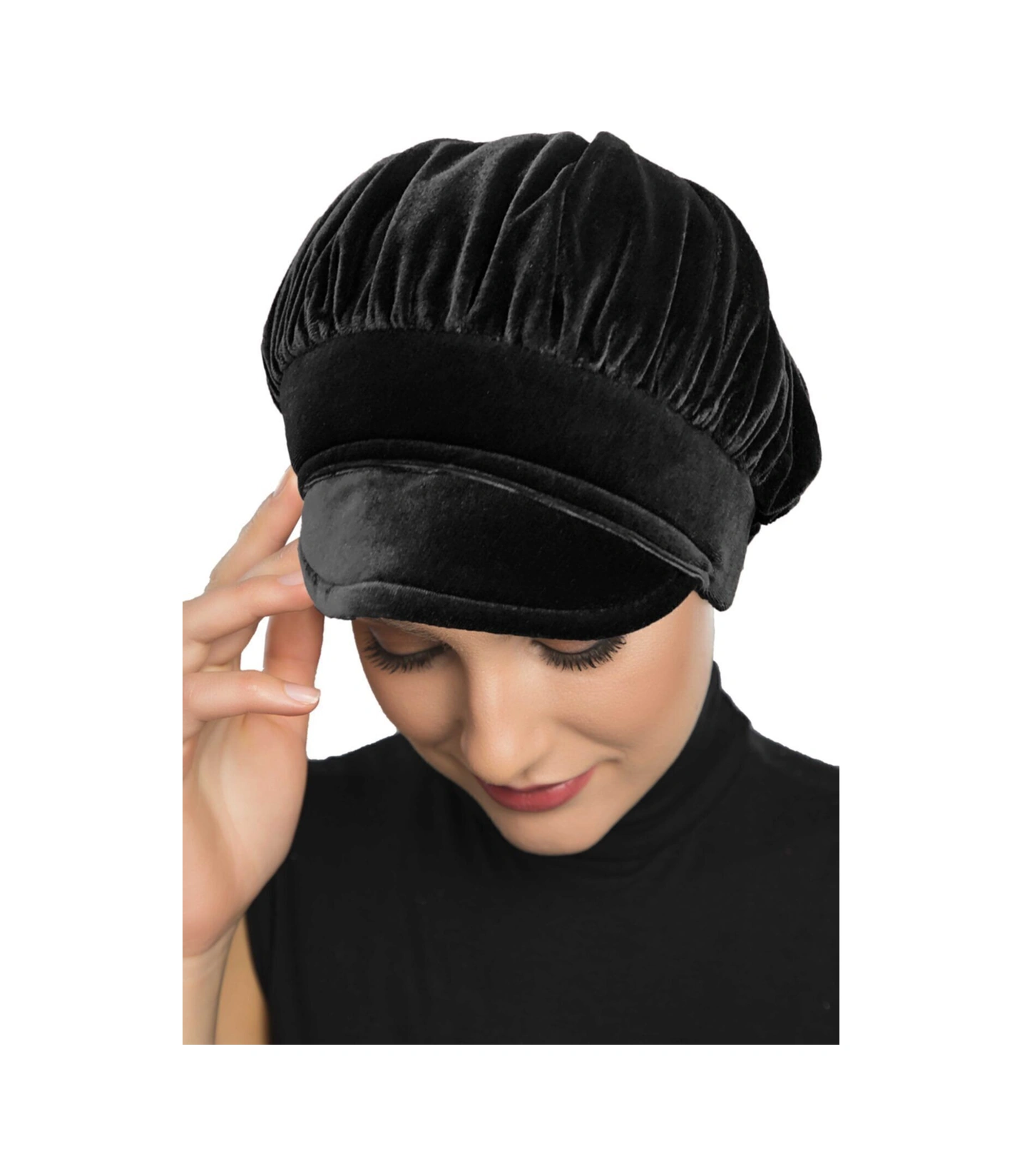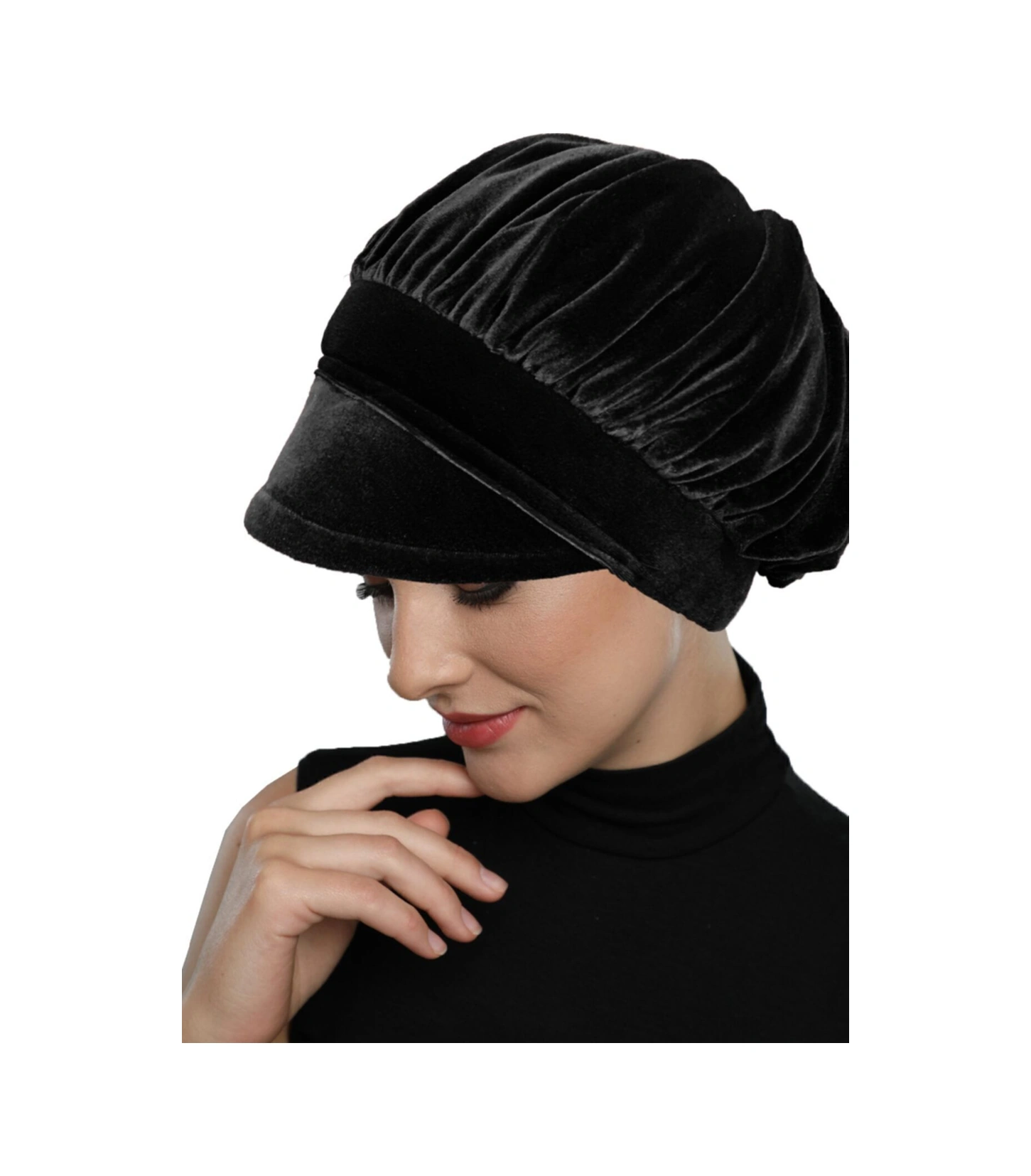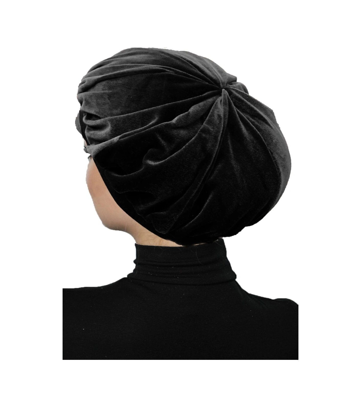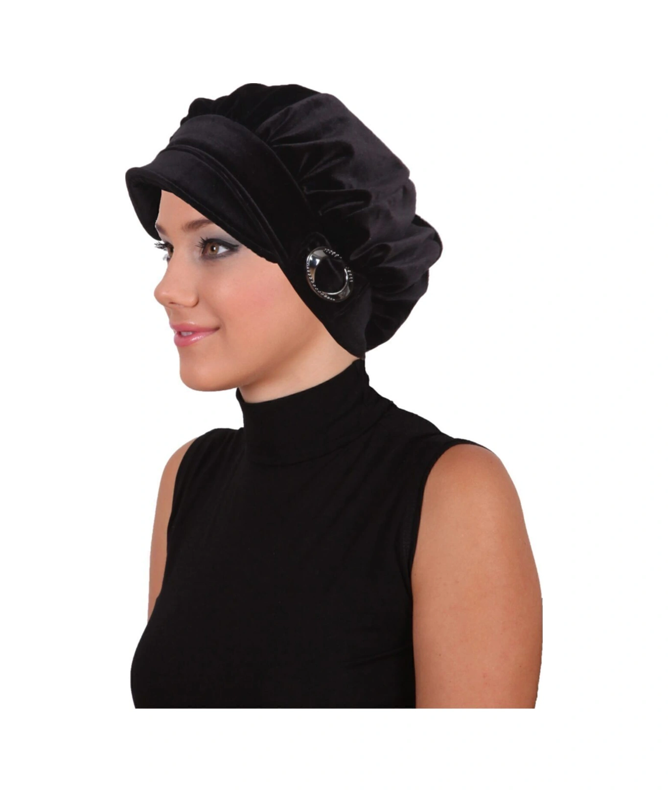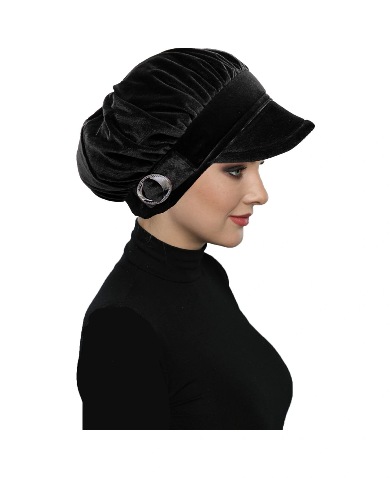 Kadife Şapka Toka Detaylı Siyah Hazır Türban Tesettür Bone Siyah