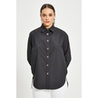 Kadın %100 Koton Oversize Gömlek Taş Düğme Detaylı Uzun Kollu Şık Model Siyah