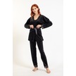 Kadın 13402-1 Dantelli Sabahlık Kadife Pijama Takım SİYAH-Siyah
