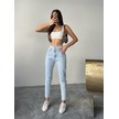 Kadın 3 Kemerli Yüksek Bel Kot Dar Paça Pantolon Buz Kar