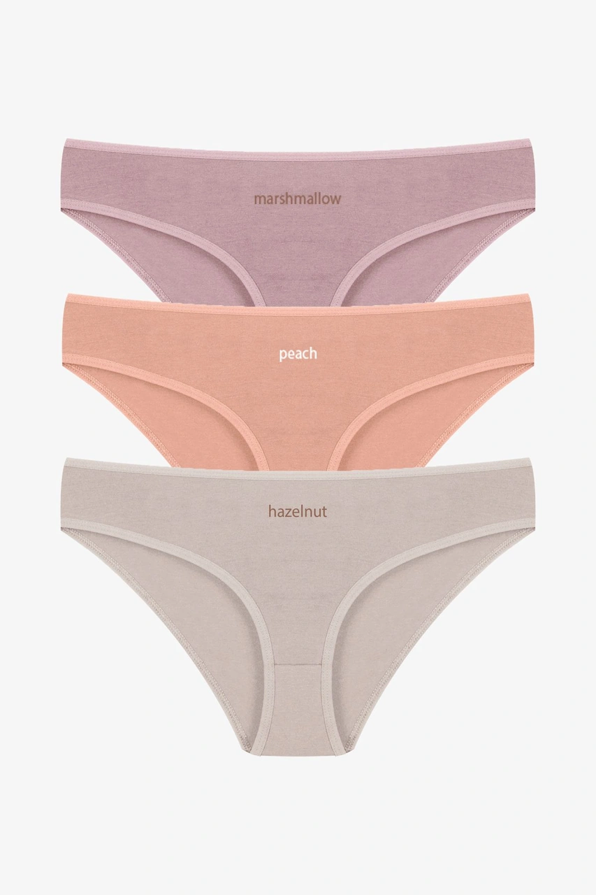 Kadın 3'lü Pamuklu Basic Külot 11040 Ten - Pembe