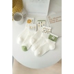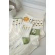 Kadın 5 Çift Premium Kalite Yeçil Çiçek Desenli Soket Çorap Beyaz - Yeşil