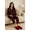 Kadın 6450 Önden Düğemli Süet Uzun Kol Pijama Takımı Lacivert-kırmızı Lacivert-kırmızı