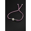 Kadın 925 Ayar Gümüş Rodyum Kaplama Pembe Ipli Asansörlü Papatya Bileklik