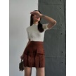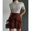 Kadın Acı Kahve Kargo Cep Detaylı Pileli Mini Etek-kahve Kahve