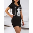 Kadın Ananas Baskılı Kısa Kol Viskon Elbise Bediva 001
