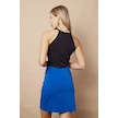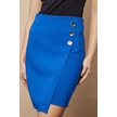 Kadın Arkadan Fermuarlı Düğme Detaylı Hafif Likralı Kumaş Diz Üstü Kalem Etek-saks SAX