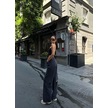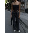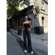 Kadın Arkadan Yırtmaçlı Jeans Kot Palazzo Pantolon - Siyah Siyah