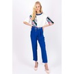Kadın Asimetrik Desenli Kısa Kollu Bluz Frn1006 Mavi
