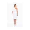 Kadın Asimetrik Kesim Pelerin Kol Tek Omuz Abiye Elbise - Ekru Ekru
