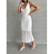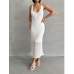 Kadın Askılı Ajurlu Yazlık Triko Elbise Ekru