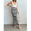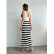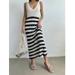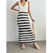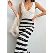 Kadın Askılı Ajurlu Yazlık Triko Elbise Krem - Siyah
