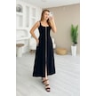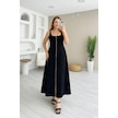 Kadın Askılı Kare Yaka Önden Fermuarlı Geniş Kesim Janjan Krep Elbise Siyah