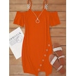 Kadın Askılı Önü Fermuarlı Asimetrik Kesim Detaylı Kalın Fitilli Kaşkorse Elbise Turuncu