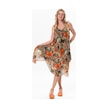Kadın Askılı Vual Afrodit Midi Boy Yazlık Elbise Batik Turuncu 6205