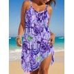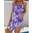 Kadın Askılı Yuvarlak Yaka Kaplumbağa Desenli Süprem Elbise Mor