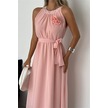 Kadın Astarlı Sıfır Kol Şifon Elbise Dpnbk2144 Pudra