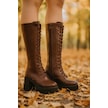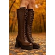 Kadın Bağcıklı Platform Topuklu Uzun Çizme Kahverengi
